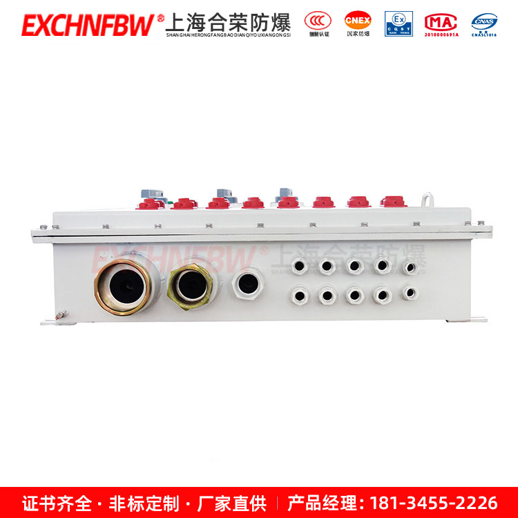 2. 本產(chǎn)品為復(fù)合型防爆結(jié)構(gòu),開(kāi)關(guān)箱采用隔爆型結(jié)構(gòu),母線箱及接線箱采用增安型結(jié)構(gòu);