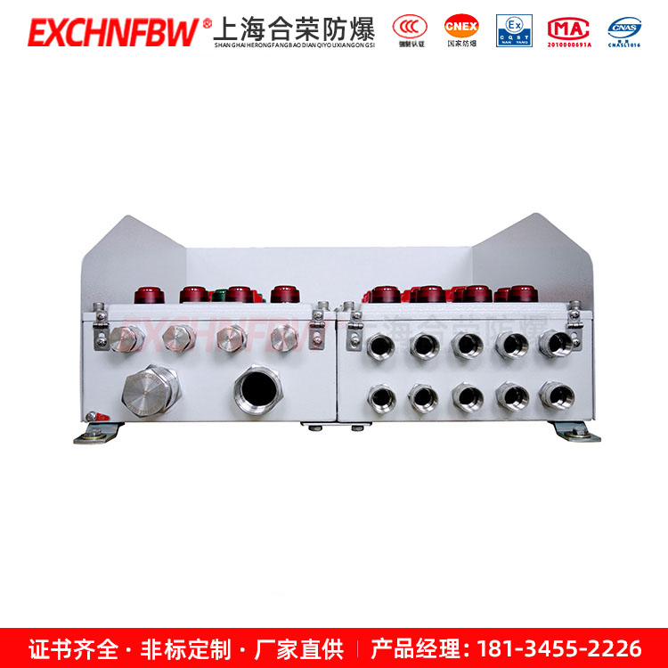 2. 本產(chǎn)品為復(fù)合型防爆結(jié)構(gòu),開關(guān)箱采用隔爆型結(jié)構(gòu),母線箱及接線箱采用增安型結(jié)構(gòu);