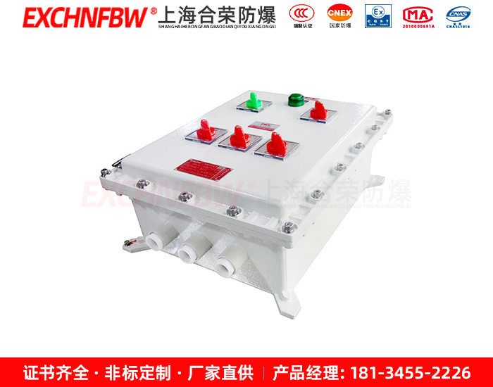 2. 本產(chǎn)品為復(fù)合型防爆結(jié)構(gòu)(鋼板焊接為隔爆型結(jié)構(gòu)),開(kāi)關(guān)箱采用隔爆型結(jié)構(gòu),防爆插銷過(guò)線箱及接線箱采用增安型結(jié)構(gòu);