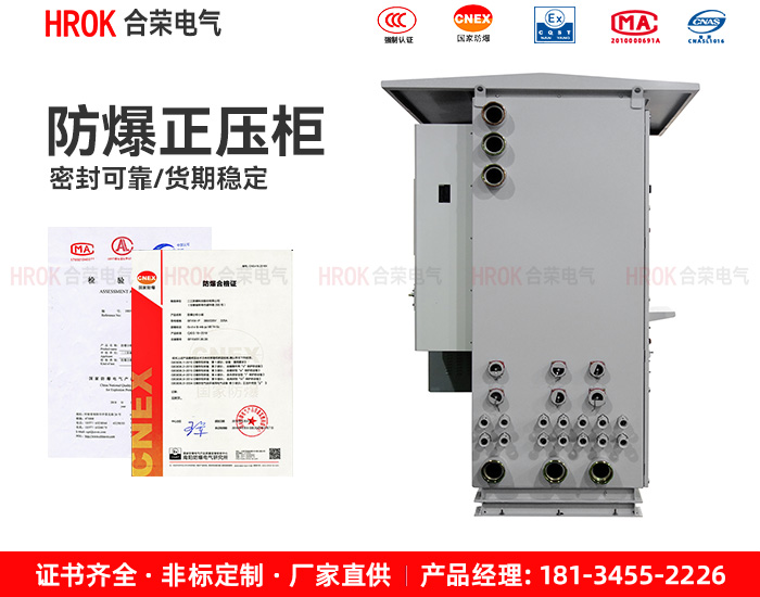 采用介質(zhì)隔離點燃源的防爆措施。即:把用戶所用的電器元件安裝在一個充滿正壓潔凈氣體的柜體內(nèi),使外部環(huán)境中易燃易爆的混合性氣體無法接觸到電器元件在正常工作時所產(chǎn)生的電火花或危險溫度,從而達到電器防爆的目的。